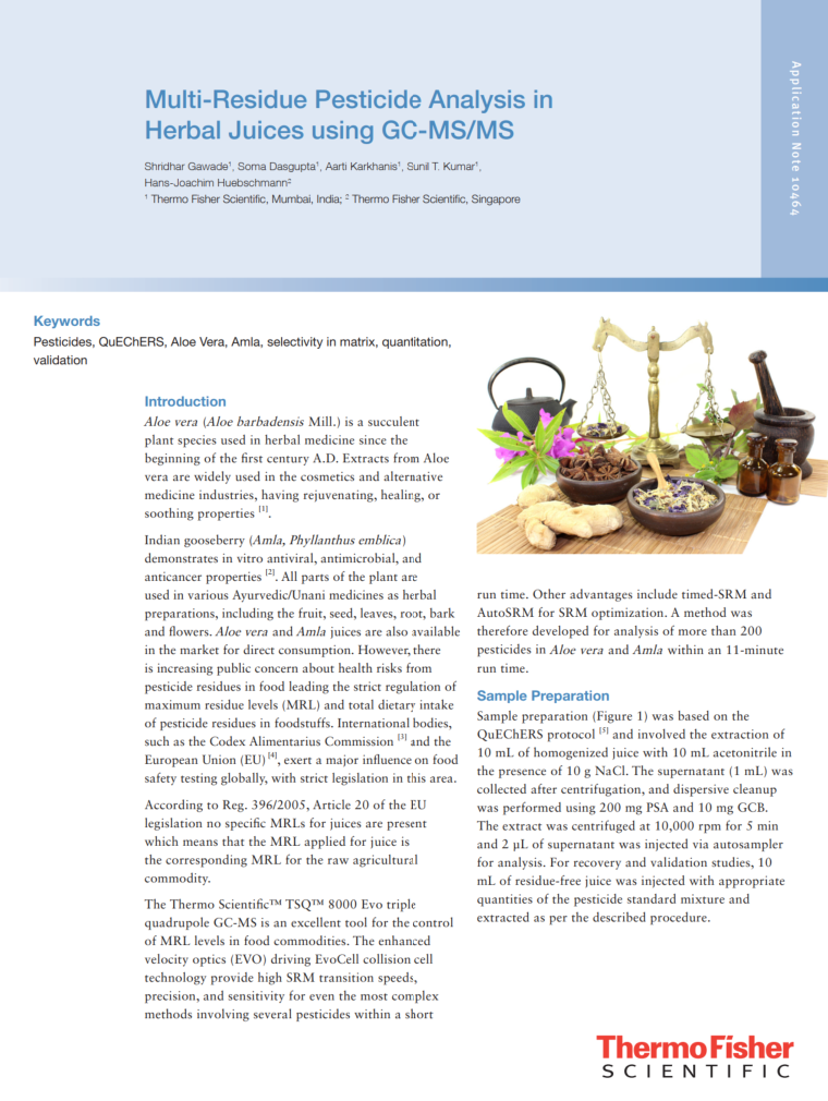 | LCGC Germany, 2008, May/June, 22–26. Thermo Fisher Scientific, Application Note AN10263 |
