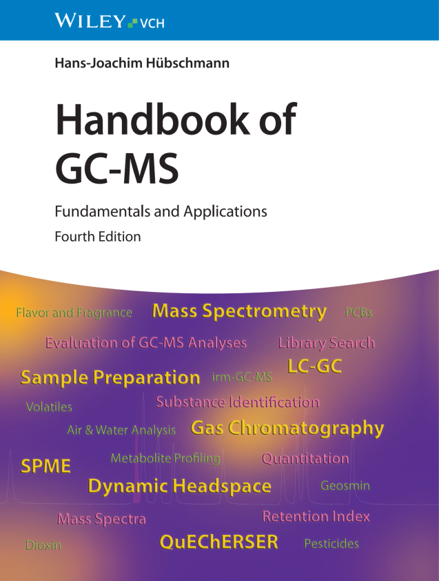 Wiley-VCH publisher, see: https://www.wiley.com/en-us/Handbook+of+GC-MS%3A+Fundamentals+and+Applications%2C+4th+Edition-p-9783527847624. Print version: ISBN: 978-3-527-84762-4, March 2025, 928 pages eBook: facilitates online index search for subjects and compounds, link to references, copy of tables for method developments and images for internal use. |